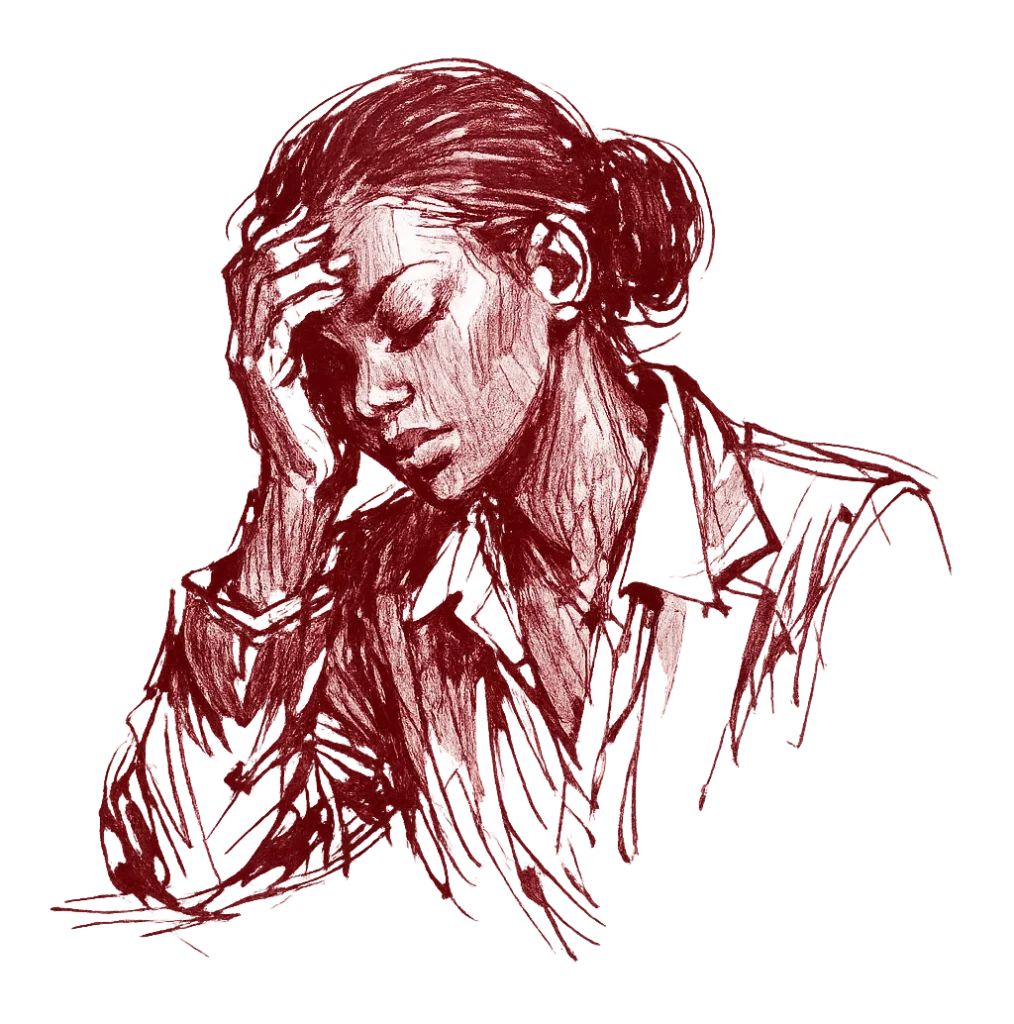 Physical discomfort from overload — knots in the stomach, tension in shoulders.